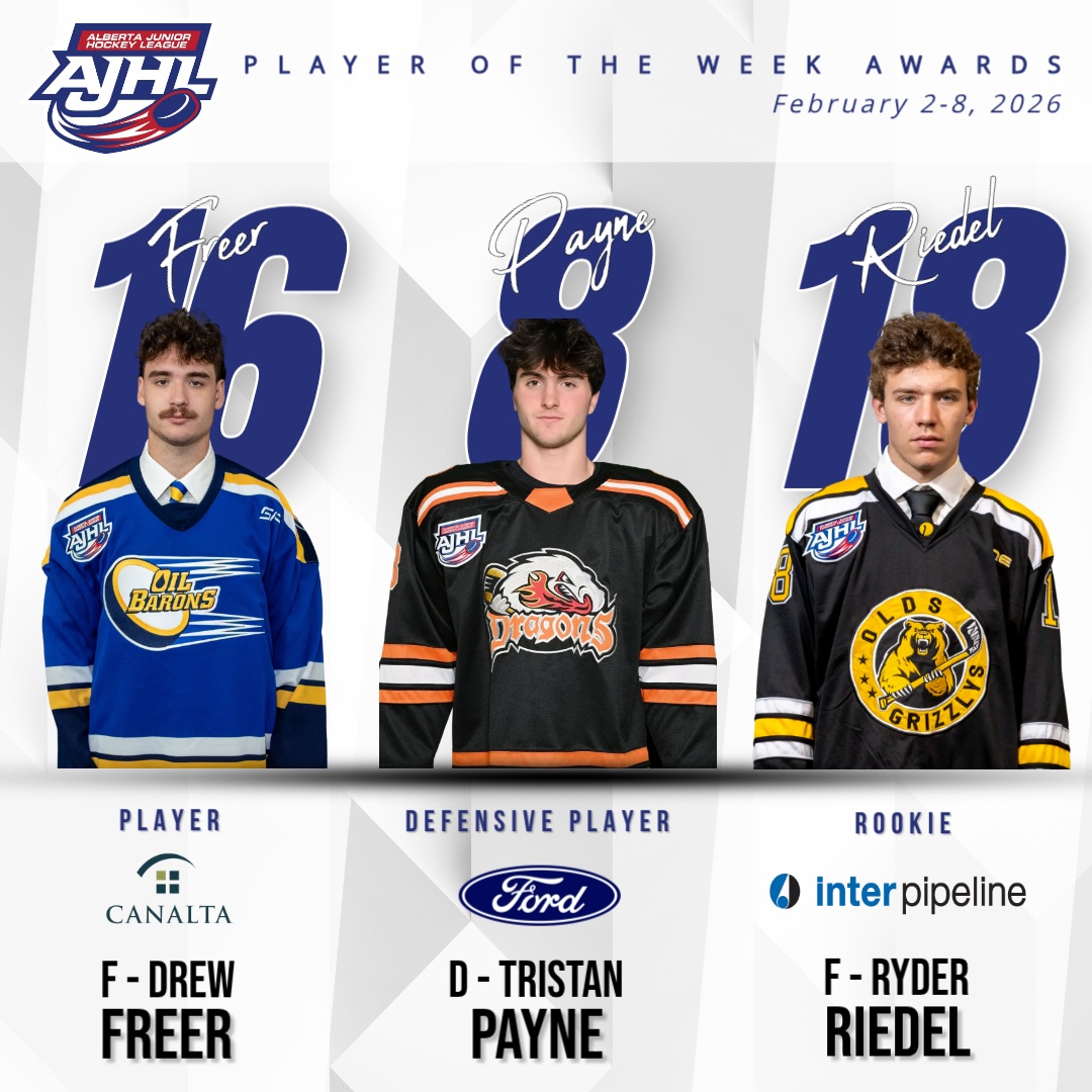 DUMAIS AND REED SELECTED FOR AJHL PLAYER OF THE MONTH AWARDS by cflett December 30, 2025January 6, 2026
