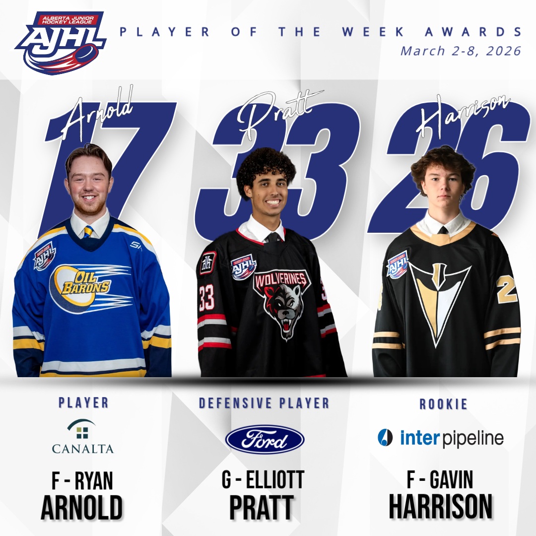 ARNOLD, PRATT AND HARRISON SELECTED AS AJHL WEEKLY AWARD WINNERS