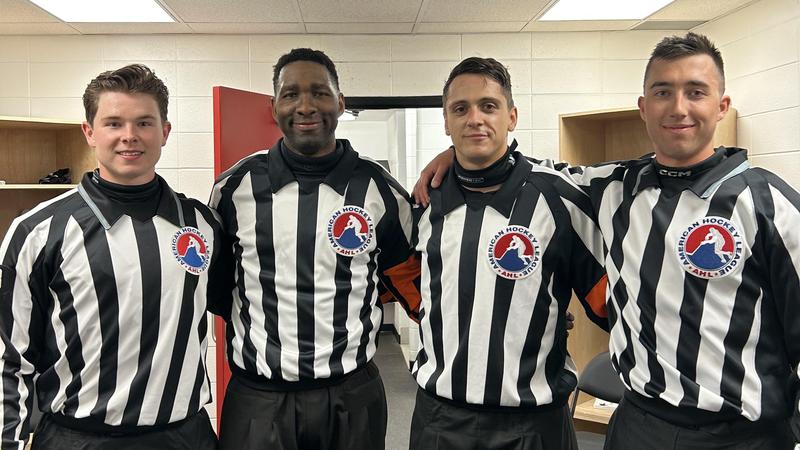 The 22-year-old officiated his first ever American Hockey League (AHL) game just over a week ago at the Scotiabank Saddledome in a matchup between the Calgary Wranglers and Abbotsford Canucks on Saturday, Oct. 12.