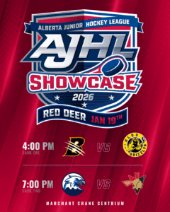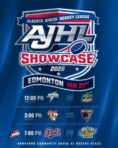 The Showcase will take place at the Marchant Crane Centrium in Red Deer on January 19th & 20th and the Downtown Community Arena at Rogers Place in Edmonton on January 21st. Each AJHL team will play one regular season game against an opposing division team, setting up a North versus South battle throughout the event.