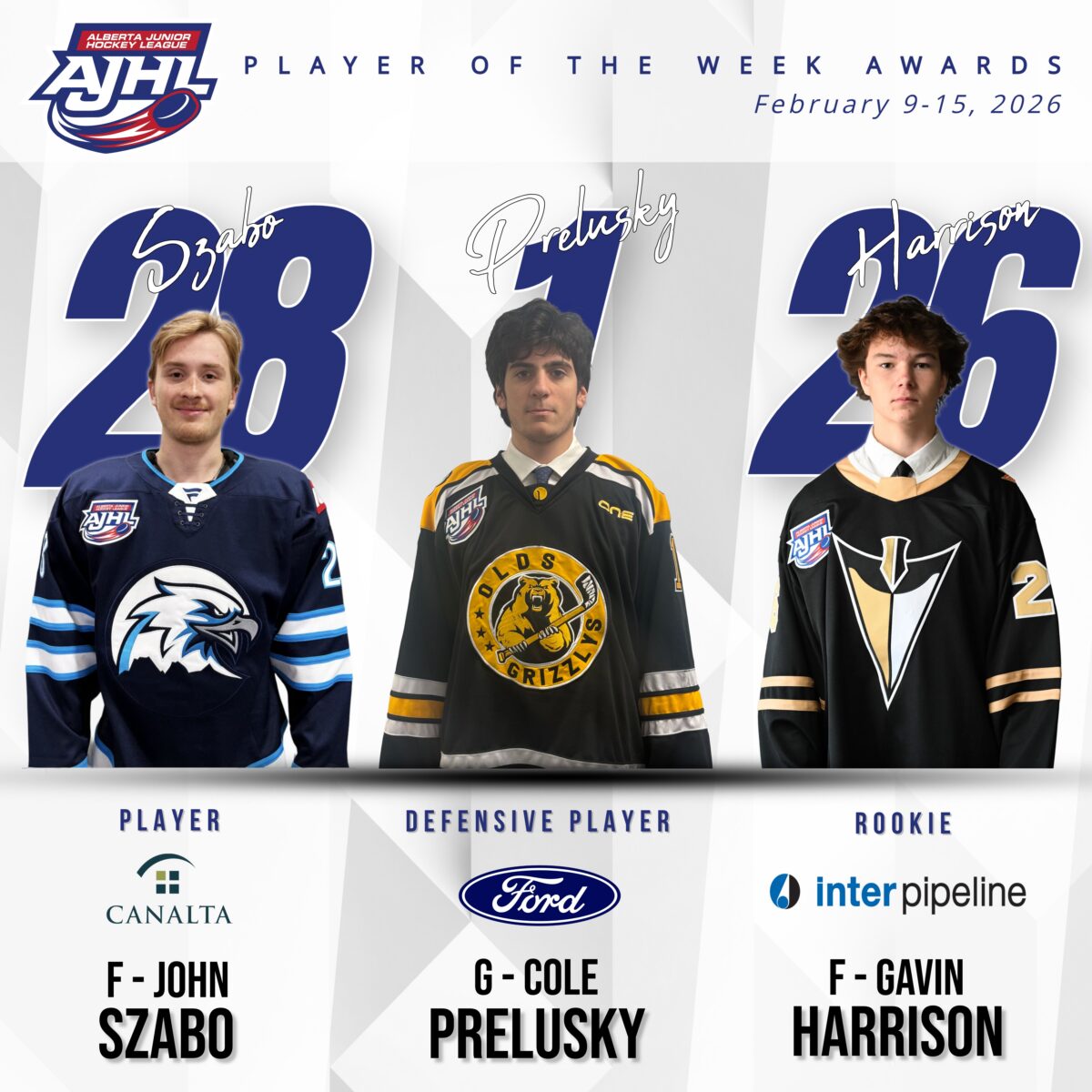 The Canalta Hotels AJHL Player of the Week is Canmore Eagles forward John Szabo with six points (4G, 2A) through three games from February 9th-15th, 2026. Szabo has extended his active point streak to eight games and 14 points.